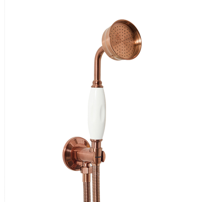 Verleihen Sie Ihrem Badezimmer mit dem Retro-Handbrauseset inkl. Halterung mit integriertem Auslassbogen und Brauseschlauch in satiniertem Kupfer ein stilvolles Update. Dieses Handbrauseset wurde aus Messing gefertigt und garantiert eine lange Haltbarkeit, zudem verfügt es über eine atemberaubende Oberfläche in satiniertem Kupfer, welche mit Sicherheit alle Blicke auf sich ziehen wird. Die Handbrause spendet einen erfrischenden Wasserstrahl und wenn diese nicht verwendet wird, sitzt diese ordentlich in der Halterung. Kombinieren Sie dieses Set mit anderen Artikeln der Elizabeth-Kollektion für ein perfekt abgestimmtes Badezimmer. Eigenschaften: Retro Design Robuste Handbrause aus Messing mit feuchtigkeitsbeständiger Oberfläche in satiniertem Kupfer Inklusive 1, 75 m langem Brauseschlauch und Halterung mit integriertem Auslassbogen aus Messing 1/2" Einlassanschluss Empfohlener Betriebsdruck: 0, 5 bar Garantie: 10 Jahre Was wird mitgeliefert? Handbrause mit 1, 75 m Schlauch Wandhalterung mit integriert...