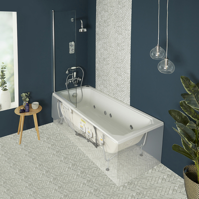 Gönnen Sie sich mit der weißen Wanne aus der Richmond Kollektion ein luxuriöses Badeerlebnis und verleihen Sie Ihrem Badezimmer einen klassischen Charme. Das Modell sorgt für einen zauberhaften Vintage-Look und überzeugt mit einer robusten Beschaffenheit, die sich auch für belebte Familienbadezimmer eignet. Die Wanne bietet Ihnen zudem reichlich Platz für einen wohltuenden Badespaß und ist dabei resistent gegen alltäglichen Verschleiß – so können Sie sich auf langlebige Haltbarkeit verlassen. In Kombination mit einer unserer Armaturen lässt sich Ihr Badezimmer stimmig und stilvoll gestalten. Eigenschaften: Mit 6 Wasserdüsen – für eine angenehme Massage und die ultimative Entspannung wie im Spa Dimensionen: L 1700mm x B 700mm x H 550mm Dimensionen des Badewannenaufsatzes: B 800mm x H 1400mm Aufsatz aus 6mm verstärktem Easy Clean Sicherheitsglas Aus hochwertigem Acryl mit einer Oberfläche in Weiß Hochglanz Verstärkt durch Harz und Glasfaser – für langlebige Haltbarkeit Strapazierbare Glasur in Wei... ...