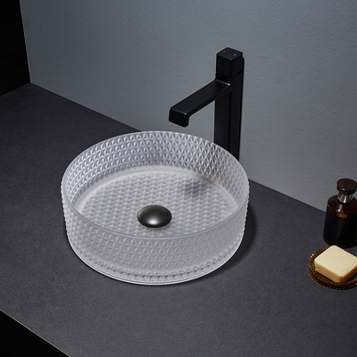 Kreieren Sie mit diesem runden 360mm Kristall-Aufsatzwaschbecken aus der Covelly-Kollektion eine gewagte und moderne Atmosphäre in Ihr Badezimmer. Dieses Covelly Aufsatzwaschbecken ist in verschiedenen Farben erhältlich – treffen Sie einfach Ihre Auswahl aus den oben aufgeführten Optionen. Dieses Waschbecken aus Kristallglas überzeugt mit einem stilvollen, geometrischen Design, einer strapazierfähigen Glaskonstruktion und einer pflegeleichten Oberfläche. Es verfügt über keine Hahnlochvorbohrung und kann so ideal mit einer unseren hohen 1-Loch Waschtischarmaturen oder einer Wandarmatur vervollständigt werden. Kombinieren Sie dieses Waschbecken mit anderen Artikeln der Covelly-Kollektion für einen abgestimmten Look. Eigenschaften: Dimensionen: Durchmesser 353 mm x H 110 mm Auswahl an Farben Kristallschliff-Glasdesign für einen einzigartigen Look Zur Installation auf einer Arbeitsplatte oder einem Waschtischunterschrank Ohne Hahnloch – geeignet für hohe 1-Loch- oder Wandwaschtischarmaturen Ohne Übe...