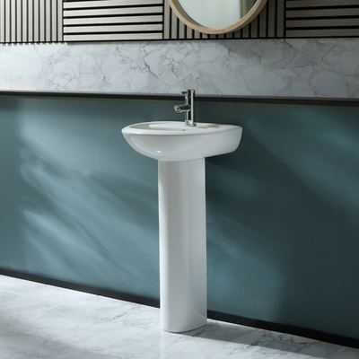 Verleihen Sie Ihrem Badezimmer mit dem 450mm Säulenwaschbecken aus der Kenton-Kollektion ein einzigartiges Ambiente. Dieses Säulenwaschbecken besteht aus hochwertiger Keramik und überzeugt mit einer leicht zu reinigen Oberfläche. Es verfügt über eine Hanlochvorbohrung, somit lässt sich dieses Aufsatzwaschbecken ideal mit einer unserer 1-Loch Waschtisch Armaturen vervollständigen. Eigenschaften:Säulenwaschbecken Ein Hahnloch Strapazierfähige Keramik mit leicht zu reinigender Oberfläche Mit Überlauf – es wird ein Ablauf mit Überlauf-Funktion oder ein universeller Ablauf benötigt Sie benötigen zudem: {{custom Var code=ESSENTIAL_EXTRAS_LINK}}1-Loch-Waschtischarmatur Siphon Ablauf mit Überlauf-Funktion oder universeller Ablauf