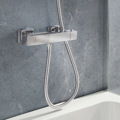 Das thermostatische Duschventil in Chrom aus der Rune-Kollektion verbindet modernes Design mit hervorragender Funktionalität. Es überzeugt mit einem robusten Finish in Chrom und modernen, geometrischen Formen, welche jedem Badezimmer schmeicheln. Das thermostatische Duschventil ermöglicht eine mühelose Steuerung von Wasserfluss und Temperatur und sorgt mit der Verbrühungsschutztechnologie jederzeit für ein sicheres und komfortables Dusch- oder Badeerlebnis. Eigenschaften: Dimensionen: B 261mm x T 92mm x H 60mm Thermostatische Temperaturregelung Finish in Chrom Duschventil aus massivem Messing 1/2" Anschluss Empfohlener Wasserdruck: 1, 0 bar