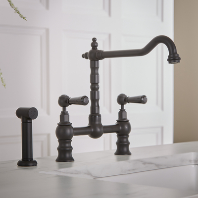 Mit der Brückenarmatur aus der Elizabeth Kollektion sorgen Sie in Ihrer Küche für einen zauberhaften Blickfang und ein nostalgisches Ambiente. Diese elegante Küchenarmatur ist in verschiedenen Farben erhältlich – Treffen Sie ganz einfach Ihre Auswahl aus den oben genannten Optionen. Das Modell überzeugt mit einem eleganten Design, das durch das strapazierbare Finish so richtig zur Geltung kommt. Hinzu kommen die Keramikgriffe zur mühelosen Regulierung des Wassers, der schwenkbare Hahn sowie die ausziehbare Spülbrause, die den Abwasch erheblich erleichtert. Dabei besteht das Modell zudem aus massivem Messing und garantiert somit langlebige Haltbarkeit, während die integrierte Keramikscheiben-Technologie zur Vermeidung von Leckagen beiträgt. Eigenschaften: Klassisches und elegantes Design Konstruktion aus massivem Messing Herausziehbare Spülbrause mit 1, 5m Schlauch Keramikgriffe ermöglichen mühelose Regulierung des Wasserflusses und der -temperatur Mit schwenkbarem Hahn (gerade) Mit Keramikschei...