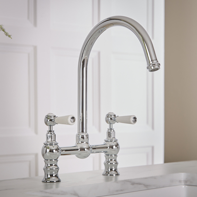 Schaffen Sie mit der kunstvoll gestalteten Brückenarmatur aus der Elizabeth Kollektion einen zeitlosen und eleganten Look in Ihrer Küche. Diese elegante Küchenarmatur ist in verschiedenen Farben erhältlich – Treffen Sie ganz einfach Ihre Auswahl aus den oben genannten Optionen. Die Konstruktion aus massivem Messing verspricht langlebige Haltbarkeit und das klassische Design wird durch das strapazierbare Finish perfekt in Szene gesetzt. Hinzu kommen die Hebelgriffe aus Keramik, die eine mühelose Regulierung des Wassers ermöglichen und der praktische Hahn zum Schwenken. Dank der integrierten Keramikscheiben-Technologie vermeiden Sie zudem die Bildung von Leckagen. Eigenschaften: Klassisches und elegantes Design Konstruktion aus massivem Messing Keramikgriffe ermöglichen mühelose Regulierung des Wasserflusses und der -temperatur Mit schwenkbarem Hahn (geschwungen) Mit Keramikscheiben-Technologie zur Vermeidung von Leckagen und Tröpfeln Anschluss: 1/2” Gewindeanschluss