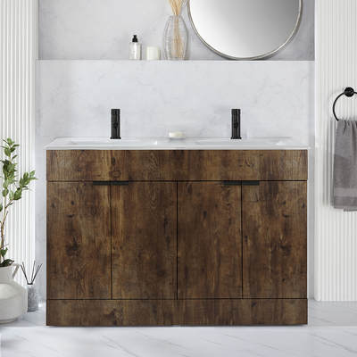 Verleihen Sie Ihrem Badezimmer einen neuen Stil mit dem modernen 1210mm Waschtischunterschrank in dunkler Eiche mit Doppelwaschbecken und Griffleiste für Möbel in Schwarz. Dieser Waschtisch überzeugt mit einem klaren, minimalistischen Design und einem atemberaubenden Finish in dunkler Eiche. Der Cluo-Waschtischunterschrank ist eine stilvolle und praktische Aufbewahrungslösung für Ihre Badezimmerutensilien und verfügt über ein bodenstehendes Design. Die Soft-Close-Türen verhindern ein geräuschvolles Zuschlagen. Das mitgelieferte Doppelwaschbecken verfügt über jeweils eine Hahnlochvorbohrung und kann ideal mit einer unserer 1-Loch Waschtisch Armaturen kombiniert werden.Wählen Sie aus einer großen Auswahl an modernen 1-Loch Waschtisch Armaturen aus und vervollständigen so Ihren neuen Waschtischunterschrank. Eigenschaften: Dimensionen Einheit: B 1188 mm x T 461 mm x H 800 mm Dimensionen Doppelwaschbecken: B 1210 mm x T 465 mm x H 18 mm Stilvolle und praktische Aufbewahrungslösung für Ihre Bad...