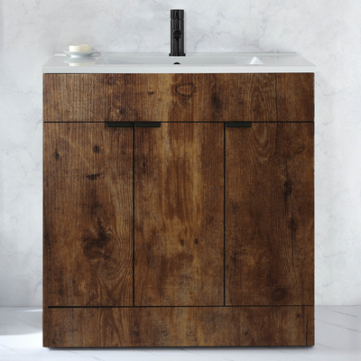 Verleihen Sie Ihrem Badezimmer einen neuen Stil mit dem modernen 800mm Waschtischunterschrank in dunkler Eiche mit Waschbecken und Griffleiste für Möbel in Schwarz. Dieser Waschtisch überzeugt mit einem klaren, minimalistischen Design und einem atemberaubenden Finish in dunkler Eiche. Der Cluo-Waschtischunterschrank ist eine stilvolle und praktische Aufbewahrungslösung für Ihre Badezimmerutensilien und verfügt über ein bodenstehendes Design. Die Soft-Close-Türen verhindern ein geräuschvolles Zuschlagen. Das mitgelieferte Waschbecken verfügt über eine Hahnlochvorbohrung und kann ideal mit einer unserer 1-Loch Waschtisch Armaturen kombiniert werden.Wählen Sie aus einer großen Auswahl an modernen 1-Loch Waschtisch Armaturen aus und vervollständigen so Ihren neuen Waschtischunterschrank. Eigenschaften: Dimensionen Einheit: B 790 mm x T 460 mm x H 800 mm Dimensionen Waschbecken: B 800 mm x T 460 mm x H 20 mm Stilvolle und praktische Aufbewahrungslösung für Ihre Badezimmerutensilien Soft-Close-T...