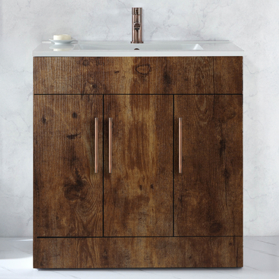 Verleihen Sie Ihrem Badezimmer einen neuen Stil mit dem modernen 810mm Waschtischunterschrank in dunkler Eiche mit Waschbecken und modernen Möbelgriffen in gebürsteter Bronze. Dieser Waschtisch überzeugt mit einem klaren, minimalistischen Design und einem atemberaubenden Finish in dunkler Eiche. Der Cluo-Waschtischunterschrank ist eine stilvolle und praktische Aufbewahrungslösung für Ihre Badezimmerutensilien und verfügt über ein bodenstehendes Design. Die Soft-Close-Türen verhindern ein geräuschvolles Zuschlagen. Das mitgelieferte Waschbecken verfügt über eine Hahnlochvorbohrung und kann ideal mit einer unserer 1-Loch Waschtisch Armaturen kombiniert werden.Wählen Sie aus einer großen Auswahl an modernen 1-Loch Waschtisch Armaturen aus und vervollständigen so Ihren neuen Waschtischunterschrank. Eigenschaften: Dimensionen Einheit: B 790 mm x T 460 mm x H 800 mm Dimensionen Waschbecken: B 810 mm x T 465 mm x H 18 mm Stilvolle und praktische Aufbewahrungslösung für Ihre Badezimmerutensilien S...