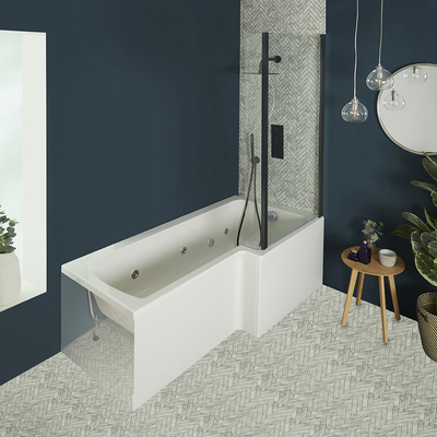 Für ein erholsames Erlebnis in modernem Stil sorgt die Whirpool Duschbadewanne aus der Sandford Kollektion. Die robuste und stabile Konstruktion eignet sich dabei hervorragend auch für größere Badezimmer und bietet Ihnen reichlich Platz für ein komfortables Badeerlebnis. Die Wanne ist zudem resistent gegen Verschleiß und Kratzer, wodurch Sie Ihnen jahrelang erhalten bleibt. In Kombination mit einer unserer Armaturen und weiteren Artikeln aus der Sandford Kollektion, verpassen Sie Ihrem Bad einen stimmigen Look. Eigenschaften: Dimensionen: L 1700mm x B 850mm x H 550mm Aufsatz Dimensionen: B 800mm x H 1400mm Inklusive beweglichem Seitenpaneel Mit 6 Wasserdüsen – für eine angenehme Massage und die ultimative Entspannung wie im Spa Aus hochwertigem Acryl mit einer Oberfläche in Weiß Hochglanz Verstärkt durch Harz und Glasfaser – für langlebige Haltbarkeit Strapazierbare Glasur in Weiß erleichtert die Reinigung Inklusive Restwasserentleerunssystem„ Kindersichere Absaugung“, d. h. wenn ein Gegenst&...