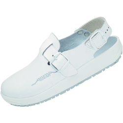 ABEBA Leder-Pantoletten Leder-Töffler weiß ausgeprägtes Leder-Fußbett verstellbarer Fersenriemen rutschhemmende Sp
