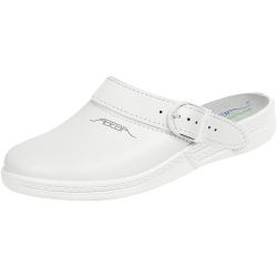 ABEBA Leder-Pantoletten Glattleder-Töffler weiß verstellbarer Fersenriemen Leder-Fußbett rutschhemmende PVC-Laufso - -