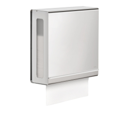 Das seitliche Acrylglasfenster zeigt den Füllstand des Handtuchpapiers an. Durch die große Klappe lässt sich das Papier - - 66666 Blomus