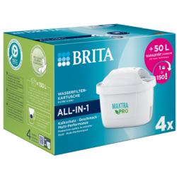 Die BRITA® MAXTRA PRO All-in 1 Pack 4 Wasserfilterkartuschen reduzieren Kalk, geschmacksstörende Stoffe, wie z. B. Chlor - - 122027 BRITA