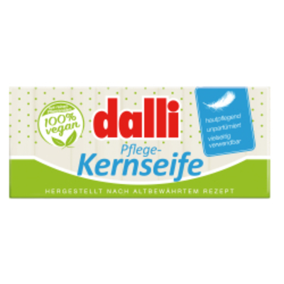 Die dalli Pflegekernseife ist ein veganer Klassiker unter den Seifen.