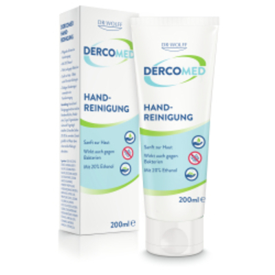 Ausreichend DERCOMED Handreinigungs-Gel nehmen und die Handinnenflächen, Handrücken, Finger, Fingerzwischenräume und Fing - - F89784 Dr. Wolff