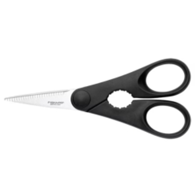 Die Fiskars Essential Küchenschere mit integriertem Flaschenöffner überzeugt durch ihre hochwertigen und kräftigen Kling - - 1023820 Fiskars