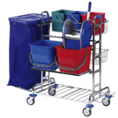 Der Floorstar RW 2 Top SOLID Reinigungswagen, verchromt ist mit einer parallelen Zwei-Eimer-Wischeinheit und einer erh - - RW 2T 2 70 Floorstar