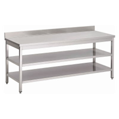 Der Gastro-Inox Edelstahl Arbeitstisch, Tiefe 700 mm, mit Aufkantung besitzt eine Arbeitsplatte mit 18 mm dicken, melami - - 301.336 Gastro Inox BV