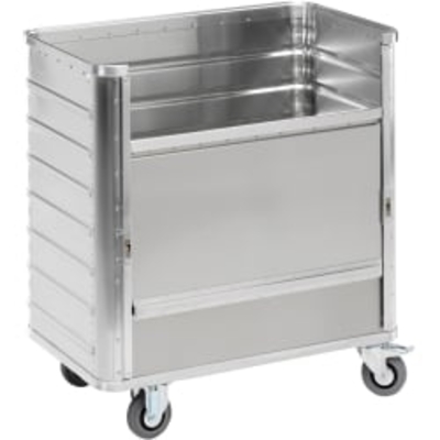 Für das ergonomische Be- und Entladen sind die Transportwagen mit einem Längswandausschnitt bzw. abklappbarer oder