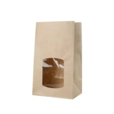 Der unbeschichtete Greenbox Blockbeutel L, braun, PLA-Fenster, 15 x 10 x 25 cm lässt sich leicht und sicher verschließen - - DRE03961 Greenbox