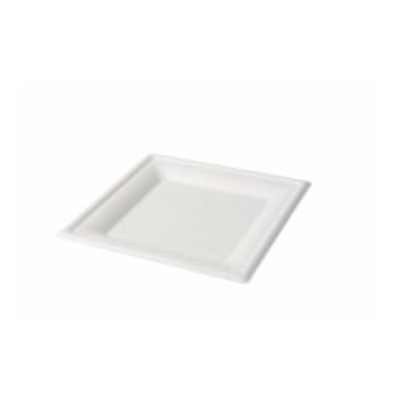 Der fettresistente Greenbox Teller, Zuckerrohr, quadratisch, weiß ist beschichtungsfrei und besitzt eine hohe Temperatur - - DSE087141 Greenbox