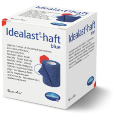 Die Idealast®-haft Idealbinde, 6 cm x 4 m gedehnt selbsthaftend, blau ist eine dauerelastische Idealbinde mit kurzem Zug - 10109382 - 9310910 HARTMANN