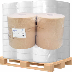 Details: Jumbo-Toilettenpapier Zellstoffpapier 2-lagig Blattabmessungen: 9, 6 x 24 cm Durchmesser:  24, 5 cm