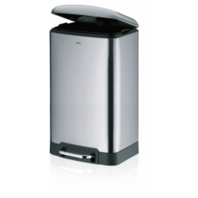Der Kela Davino Tretmülleimer besteht aus Edelstahl und der Inneneimer aus schwarzem Kunststoff. An dem Inneneimer ist e - - 10903 Kela