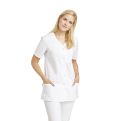 Der Leiber Kasack, kurzarm, Damen, weiß ist mit zwei praktischen Seitentasche und einer Brusttasche ausgestattet. Zudem - - 08/2256/01-46 Leiber