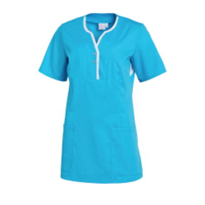 Der Leiber Schlupfkasack, kurzarm, Damen, türkis/weiß besteht aus atmungsaktivem Stretchgewebe aus Piqué-Gewebe sowie au - - 08/1335/7601-S Leiber