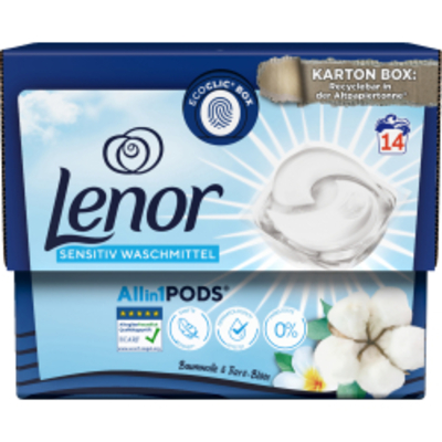 Die Lenor Waschmittel Sensitiv All-in-1 PODS® in einer recyclebaren KARTON BOX wurden speziell für - - 8001090495235 Procter & Gamble Service Gmb H