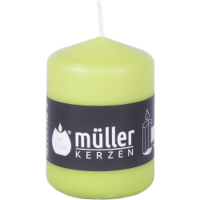 Die Müller Kerzen Stumpenkerze, maigrün werden aus einer speziellen Wachsmischung gepresst und mit einem farbigen Tauchw - - 2010815776 Müller Kerzen