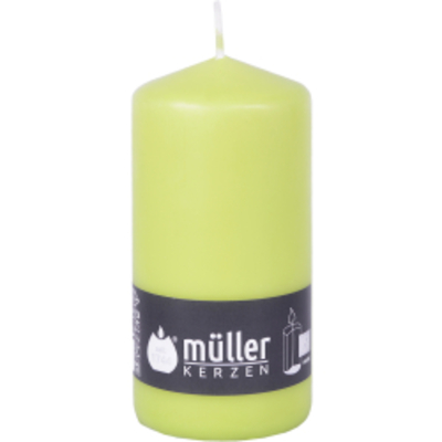 Die Müller Kerzen Stumpenkerze, maigrün werden aus einer speziellen Wachsmischung gepresst und mit einem farbigen Tauchw - - 2011356876 Müller Kerzen