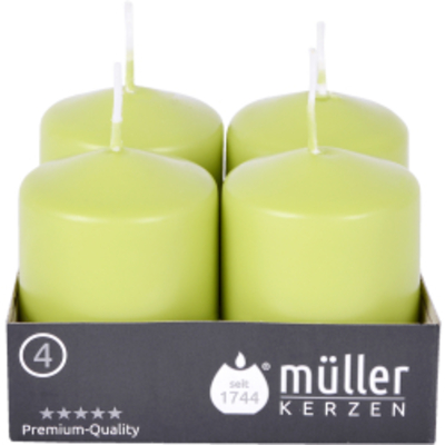 Die Müller Kerzen Stumpenkerze, maigrün werden aus einer speziellen Wachsmischung gepresst und mit einem farbigen Tauchw - - 2400624876 Müller Kerzen