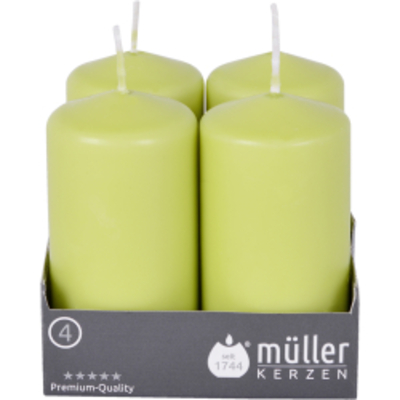 Die Müller Kerzen Stumpenkerze, maigrün werden aus einer speziellen Wachsmischung gepresst und mit einem farbigen Tauchw - - 2400904876 Müller Kerzen