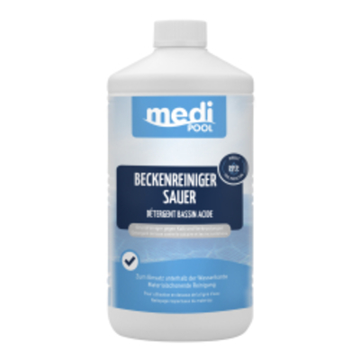 Anwendung Beckenreiniger sauer auf gut vordurchnässte Fläche pur oder bis 1:10 verdünnt mit Bürste oder Schwamm auftra - - medi Pool