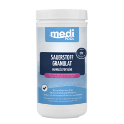 Das medi POOL Sauerstoff-Granulat ist eine sanfte Alternative zur Desinfektion mit Chlor oder Brom. Eine Kombination vo - - medi POOL Gmb H