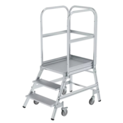 Die MUNK Günzburger Podesttreppe, einseitig begehbar, eignet sich ideal zum dichten Heranfahren an höhere Arbeitsbereich - - 050103 Günzburger Steigtechnik