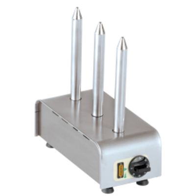 Das Edelstahlgehäuse des Neumärker Manufaktur Hot Dog Spießtoasters ist stabil und langlebig. Die Toastspieße aus Alumin - - 13-50701 Neumärker