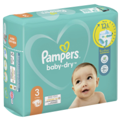 Die Pampers Baby Dry 3 Midi Windeln, 6-10 kg, Größe 3 mit saugfähigem Kern, der Flüssigkeiten sofort absorbiert. Während - - 8006540715406 Pampers
