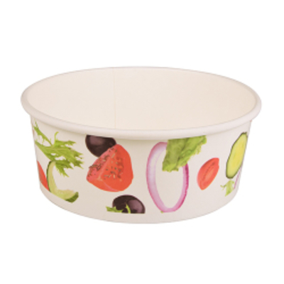 Salatschale aus beschichteter Pappe, außen bedruckt mit frischen Salat-Motiven. Ideal für den " To Go"-Verzehr. Detai