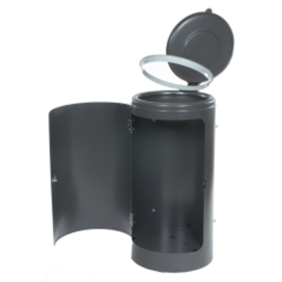 Rastplatz-Abfallsammler 120 L abschließbar mit Stahldeckel Klemmring grau pulverbeschichtet mit Tür vorn zur Boden - - Metallwerke Renner