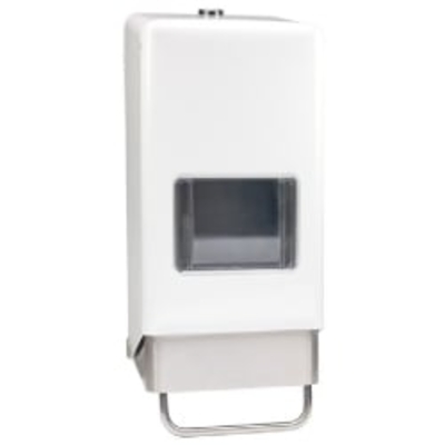 Der rath's Wandspender für Softflaschen mit einem Gehäuse aus weiß beschichtetem Stahlblech kombiniert mit gebürstetem E - - 1200 pr. Ursula Rath