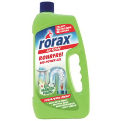 rorax Rohrfrei Bio-Power-Gel beseitigt umweltschonend Verstopfungen im Abflussrohr und beseitigt üble Gerüche. Bei der e