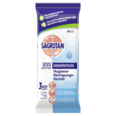 Sagrotan Hygiene-Reinigungstücher entfernen 99, 9% der Bakterien, inklusive MRSA, Klebsiella pneumoniae NDM-1-positiv, E. - - 3091406 Reckitt Benckiser Deutschland Gmb H