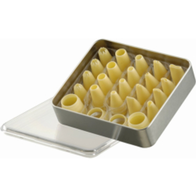 Farbe: Elfenbein Höhe: 3 - 3, 5 cm 20 verschiedene Tüllen und 2 Adapter Inhalt: 4 Sterntüllen, 8 Lochtüllen, 8 Garnier - - 196570 Schneider
