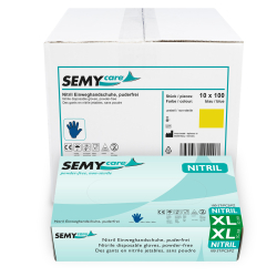 Die Semy Care Nitrilhandschuhe im Spenderkarton, puderfrei, blau mit Rollrand sind beidhändig verwendbar und bieten einen - - SC-359