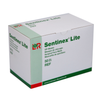 Die Sentinex® Lite OP Maske, unsteril besitzt eine sehr gute Trageeigenschaft und eine hohe bakterielle Filterleistung. D - 06866798 - 11983 Lohmann & Rauscher