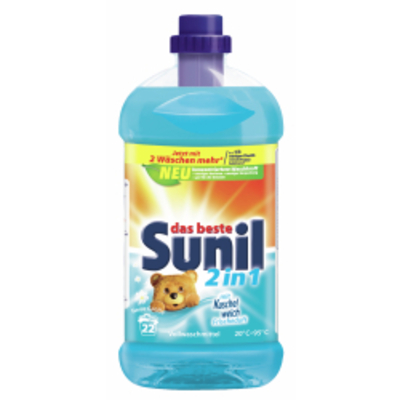 Das Sunil Vollwaschmittel Kuschelweich 2in 1, 22 WL entfernt, dank der aktiven Fleckenlösekraft, zuverlässig und tiefgrei - - 4013162000005 Sunil