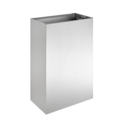 Der Abfallbehälter von Wagner EWAR für die Aufputz-Montage mit gebürsteten und matt geschliffenen Sichtflächen.