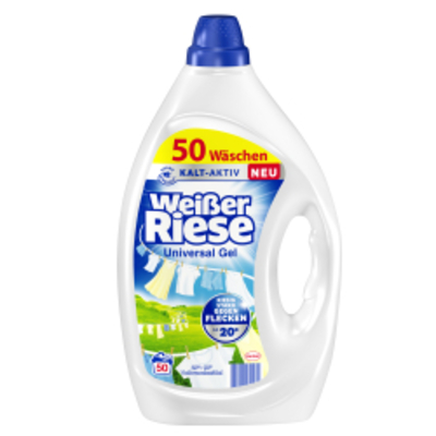 Das Weißer Riese Universal Gel Vollwaschmittel, 50 WL ist ein kraftvolles Flüssigwaschmittel, das speziell entwickelt wu - - W50GU Weißer Riese