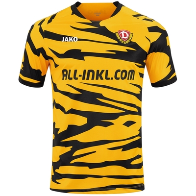 Details: Das 3D Dynamo Dresden Club Logo aus PU und das ALL-INKL.COM Logo auf der Brust zeigen deine Vereinszugehörigkeit. Auf dem Rücken prangt stolz der "DYNAMO" Schriftzug, der jedem klar macht, für welches Team dein Herz schlägt. Dank der modernen Kragenlösung bietet das T-Shirt hohen Tragekomfort und sieht dabei stylisch aus. Besonders umweltbewusst: 100 % der eingesetzten Materialien bestehen aus recyceltem Polyester. Hol dir jetzt das Dynamo Dresden Warm-Up T-Shirt im JAKO Onlineshop!
